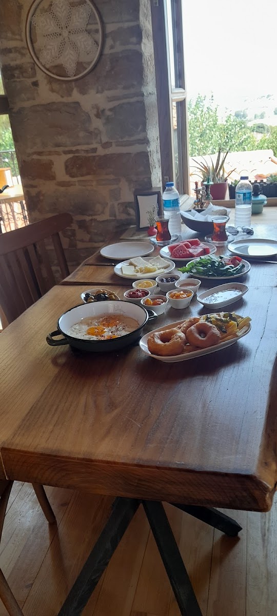 The atmosphere at Yoti Cafe Zeytinli is truly enchanting. Imagine enjoying your meal on a cozy terrace, surrounded by breathtaking views of lush hills and the quaint village below. As you savor your food, the gentle breezes carry the harmonious sounds of nature, creating the perfect backdrop for a relaxed breakfast or an evening dessert rendezvous. The café has an authentic ambiance, each corner radiating warmth and comfort, enhanced by the meticulous wooden and stone craftsmanship visible throughout.